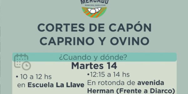El Mercado Municipal realizará una nueva jornada de comercialización de cortes caprinos y ovinos este martes 14, con precios de $9500 por kilo. La iniciativa busca acercar productos regionales de calidad a distintos sectores de Bariloche.