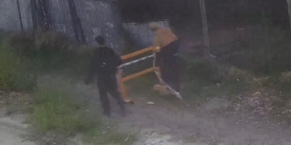 El Sistema Integral de Prevención del Delito detectó a través de sus cámaras el momento en que dos jóvenes sustraían una valla de señalización de una obra pública en la intersección de Don Bosco y Arenales. La rápida coordinación entre el centro de monitoreo y la policía permitió interceptar a los sospechosos a solo dos minutos del hecho.
