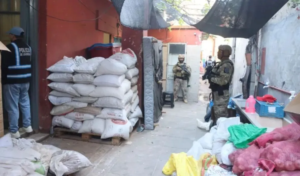 Tras este primer hallazgo, el Juzgado Criminal y Correccional Federal N° 9 ordenó un allanamiento en un predio de la calle Palmar al 7200, en Liniers. En el lugar, que funcionaba como depósito y vivienda, los investigadores encontraron 301 bultos con mercadería adulterada, incluyendo carne envasada, snacks y queso casero. También secuestraron máquinas contadoras de dinero, 120.000 pesos y documentación relevante para la causa.