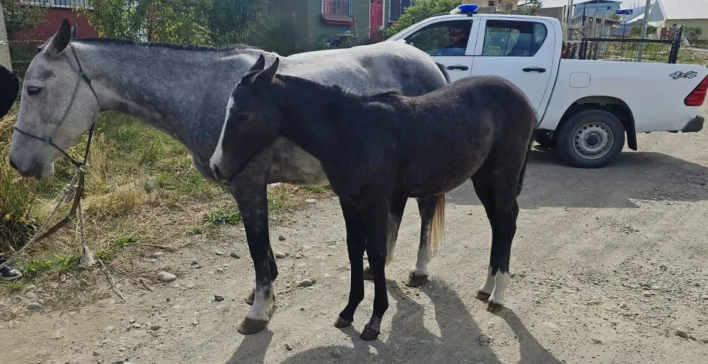 Vecinos del barrio denunciaron la presencia de una yegua y un potrillo que circulaban libremente por la vía pública. Personal municipal se hizo presente en el lugar y recordó las normas sobre tenencia responsable de animales.